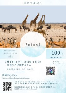 - 6/22(日)9:00〜12:00 英語で遊ぼうRain@区民ひろば朋有さくら