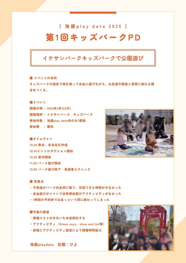 playdate第1回イケサンパークキッズパークでプレイデートを行ってきました。